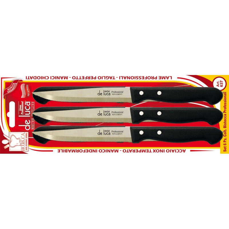 Set 6 coltelli bistecca con lama in acciaio inox cm 11 (manico nero) LINEA HO.RE.CA