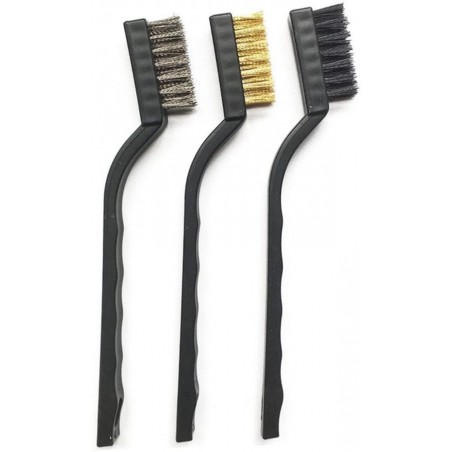 Set di 3 spazzole metalliche (nylon, ottone, acciaio inox)