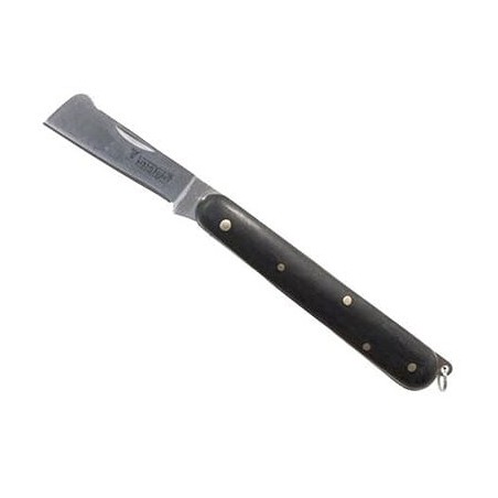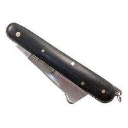 Il coltello da innesto a lama tronca in acciaio e manico in bakelite è un pratico coltellino richiudibile per il minimo ingrombo con sistema di bloccaggio anti chiusura accidentale.