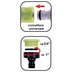 Dotato di doppia filettata per avvitarsi su rubinetti con uscita sia da 1'' pollice che da 3/4''.