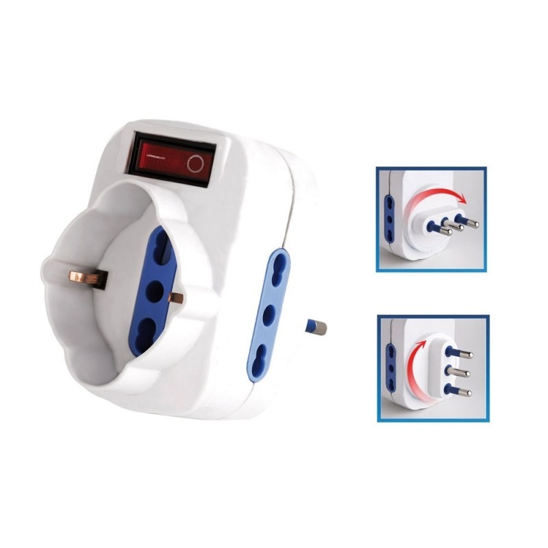Adattatore spina ruotante bipasso con schuko / interruttore